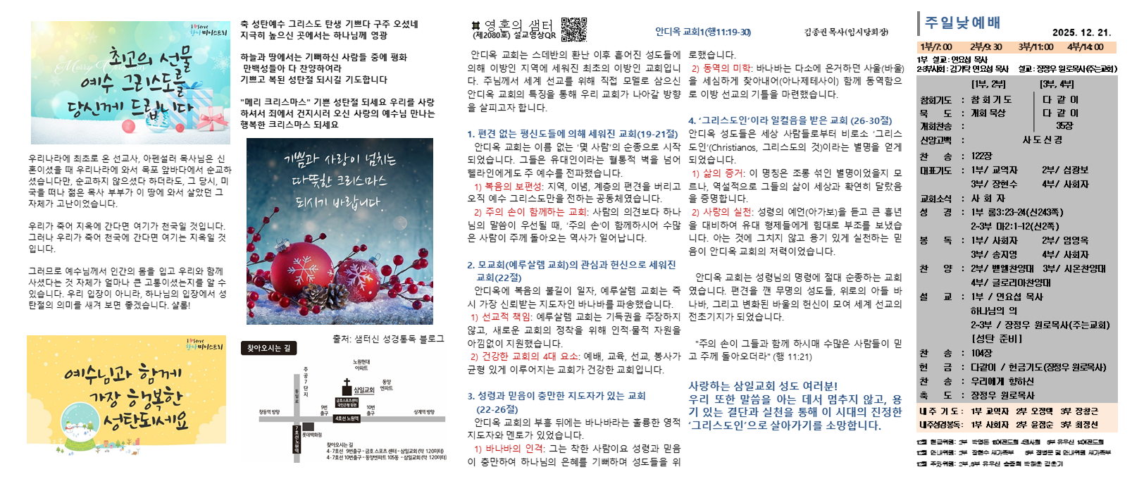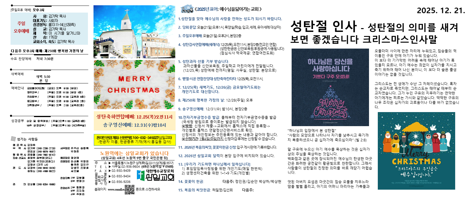 4. ¼ºÅº°¨»ç¿¬ÇÕ¿¹¹è(¼¼·Ê½Ä): 12/25(¸ñ), ¿ÀÀü11½Ã, º»´ç2Ãþ(Àü±³ÀÎ ¿¬ÇÕ)