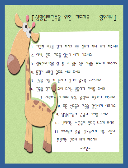 ¿µÀ¯Ä¡ºÎ »ý¸í¼¾ÅÍ ±âµµ¹®ÀÔ´Ï´Ù.(ÇÑ±ÛÆÄÀÏhwp. ÷ºÎ) ¾ÆÀ̵éÀº È¥ÀÚ ÀбⰡ ºÎÁ·ÇÏ¿© °¡Á¤¿¡ ºÎÂøÇÏ¿© ºÎ¸ð´Ô°ú ÇÔ²² ±âµµÇÒ ¼ö ÀÖµµ·Ï Å©°Ô ÀÛ¼ºÇÏ¿´½À´Ï´Ù. ÇÁ¸°Æ®Çϰí ÄÚÆÃÇÏ¿© ³ª´²ÁÖµµ·Ï ÇÒ°Ô¿ä.
