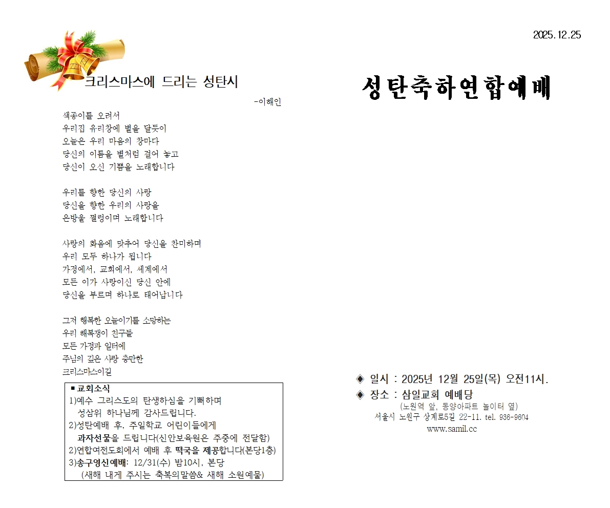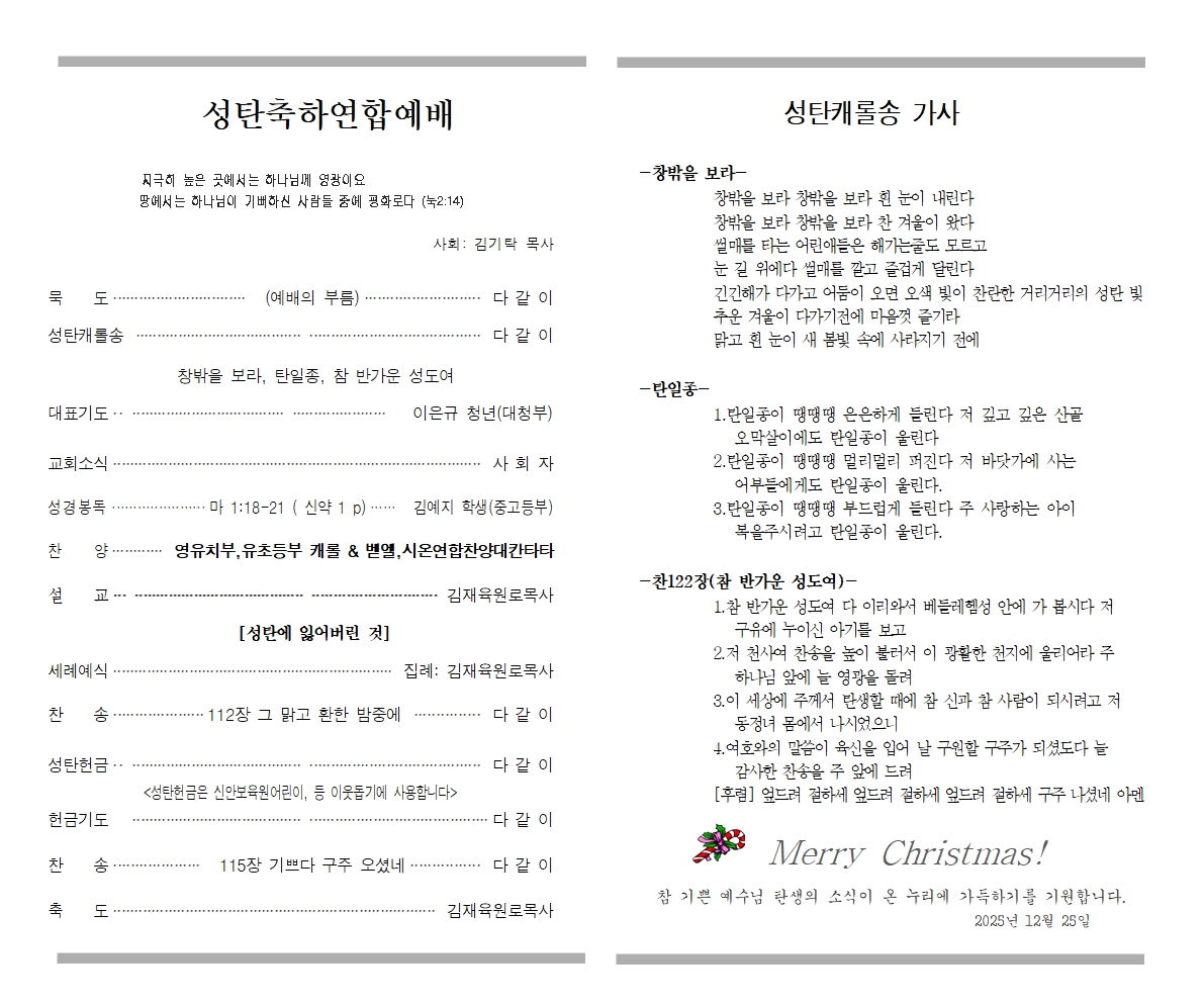 2025³â 12¿ù 25ÀÏ ¼ºÅºÃàÇÏ¿¬ÇÕ¿¹¹è ¼ø¼Áö